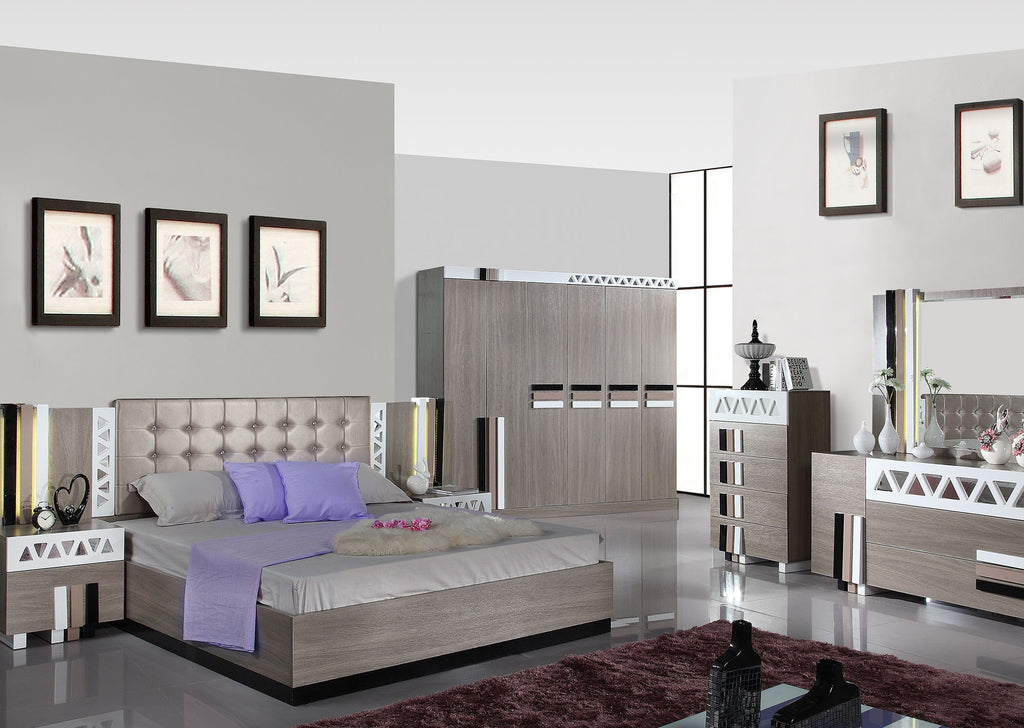 Modern Bedroom Bed With Night Stand And Dresser Set Dil-1039# Grey